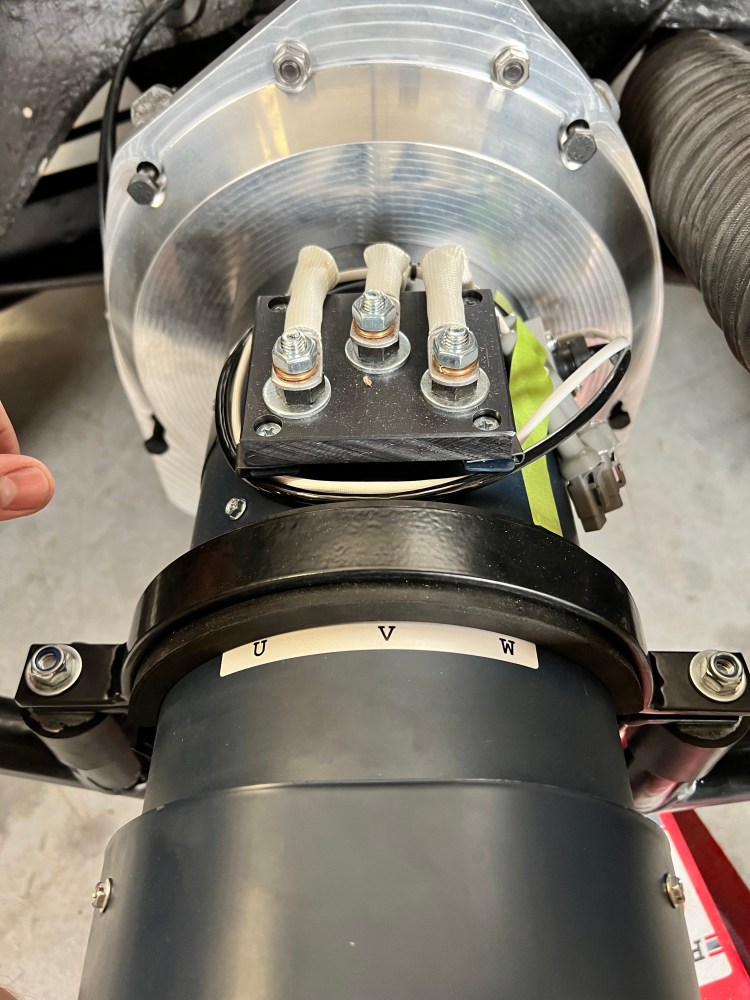 One thing that worked in his favor though was the fact that our sister company, Motion Products, Inc., restored the vehicle prior to the start of the conversion. During the restoration process, they had taken out the original back seats at the customer’s request. This allowed Drew to place 2 of the 3 Tesla modules and the MCU for the battery management system where the original back seats were. As far as body modifications, there were only minor modifications that needed to be done to the rear bumper cover. The spot welds for the original motor mount were drilled out and the bottom seam needed to be shaved down in the center a quarter inch by 6 inches long giving the motor better clearance.