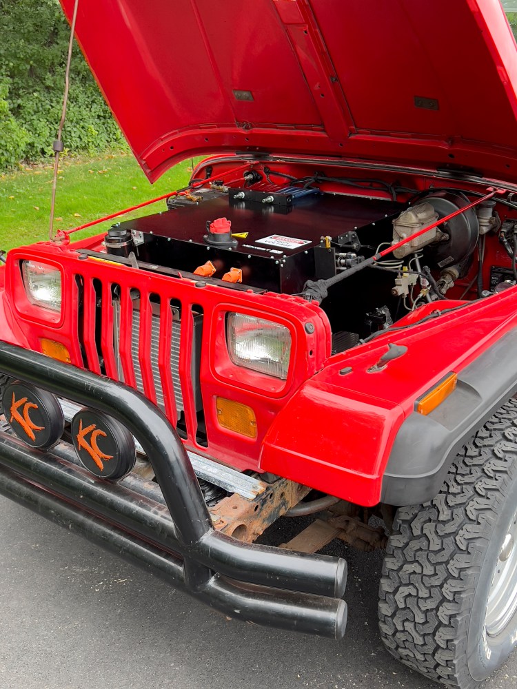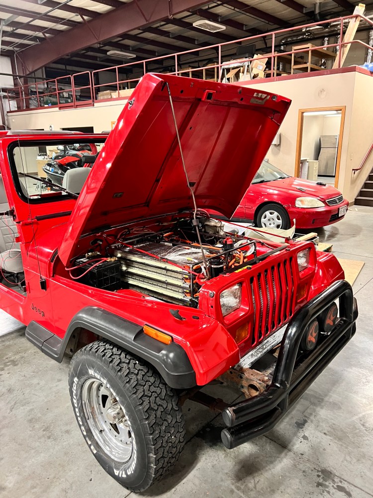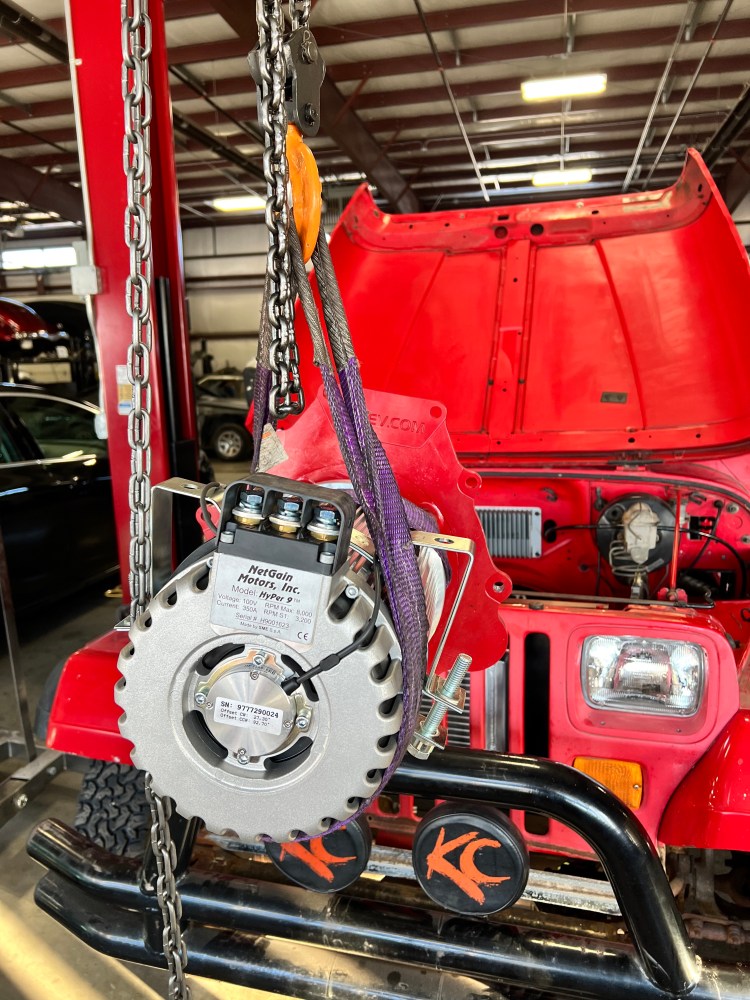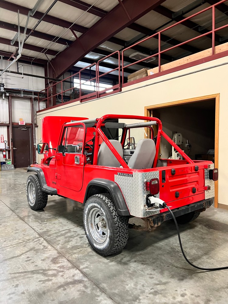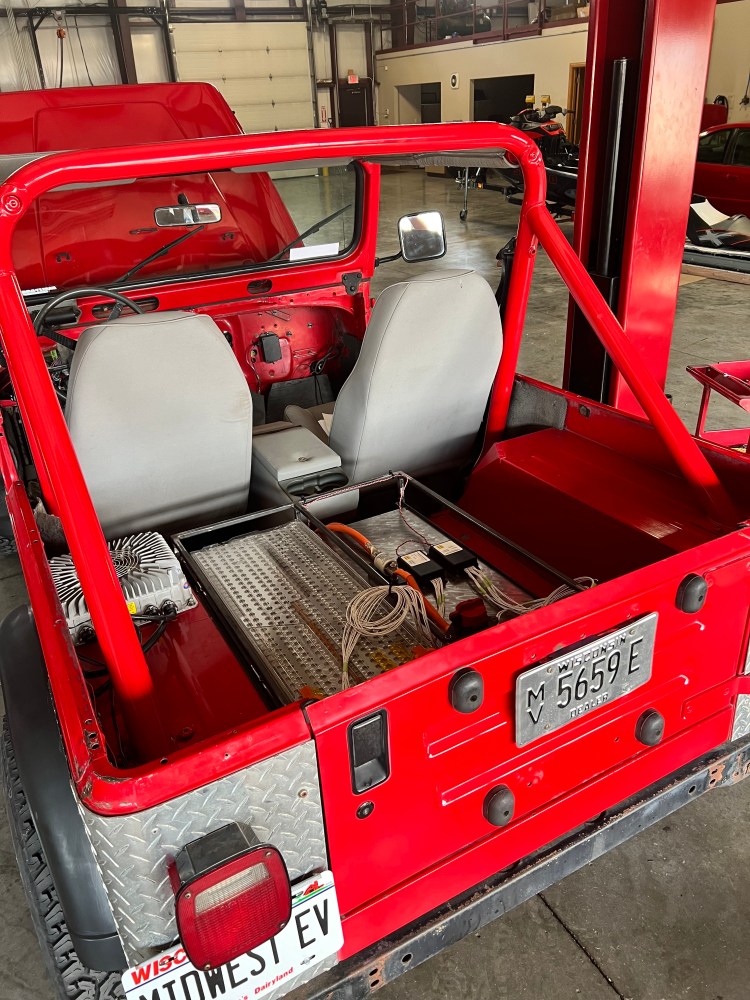The 1989 Jeep Wrangler was our first official EV conversion here at Midwest EV and came in with a 2.5L 4 cylinder linked to an AX5 5-Speed transmission. With an engine knock upon arrival, Drew was able to get it running, but it didn’t run very well. Thankfully the intention from the beginning was to convert it. We decided to take this project on as an internal company project to get some experience under our belt. We also wanted an in-house project done to show our capabilities and to use at our local events to get our name out.
