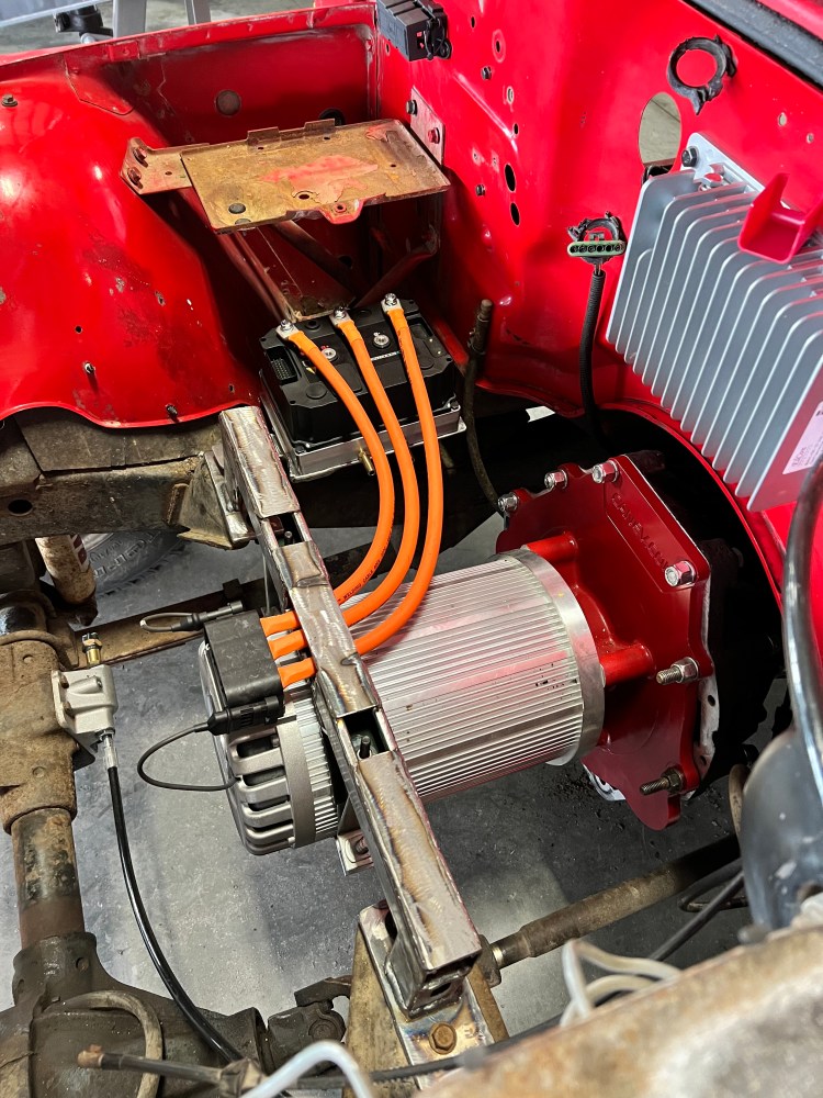 Depending on the EV conversion project, about 75% of the project could be metal fabrication. Between motor mounting and battery box fabrication and mounting, some projects are much more involved than the others. Projects that have custom requests also take more of a creative and thought-out approach in how we configure mounting of the motor and components. Drew also learned the importance of ease of wiring or service if needed. Easy access to components will help if the electric vehicle needs services or if parts need to be replaced or upgraded.