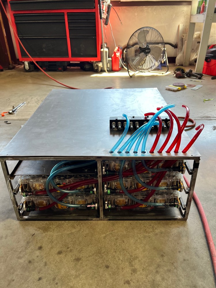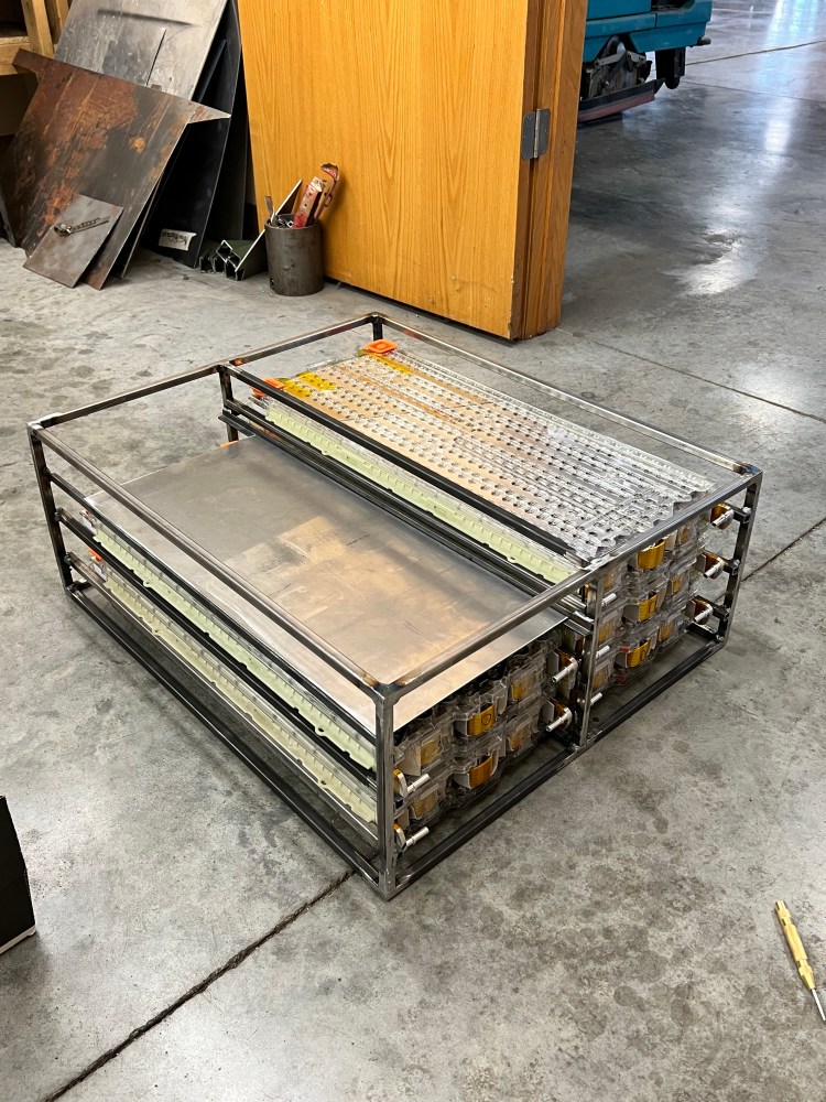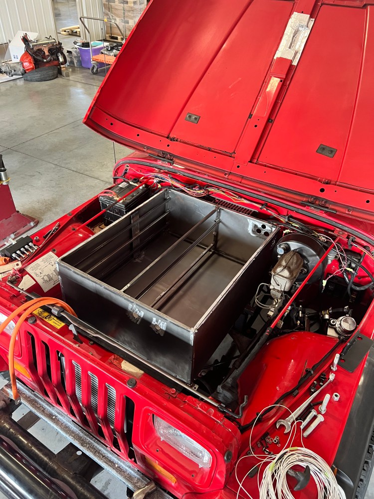 After the coupler was machined, fabrication of the motor mount, battery boxes, and mounting of the battery boxes needed to be done. The metal fabrication process took Drew longer than he expected. Prior to starting the Jeep project, Drew didn’t think that the metal fabrication process would be as intensive. He appreciates that he was able to go through the Jeep project beforehand, so he could truly learn the importance of this step in the process of converting a vehicle to an EV.